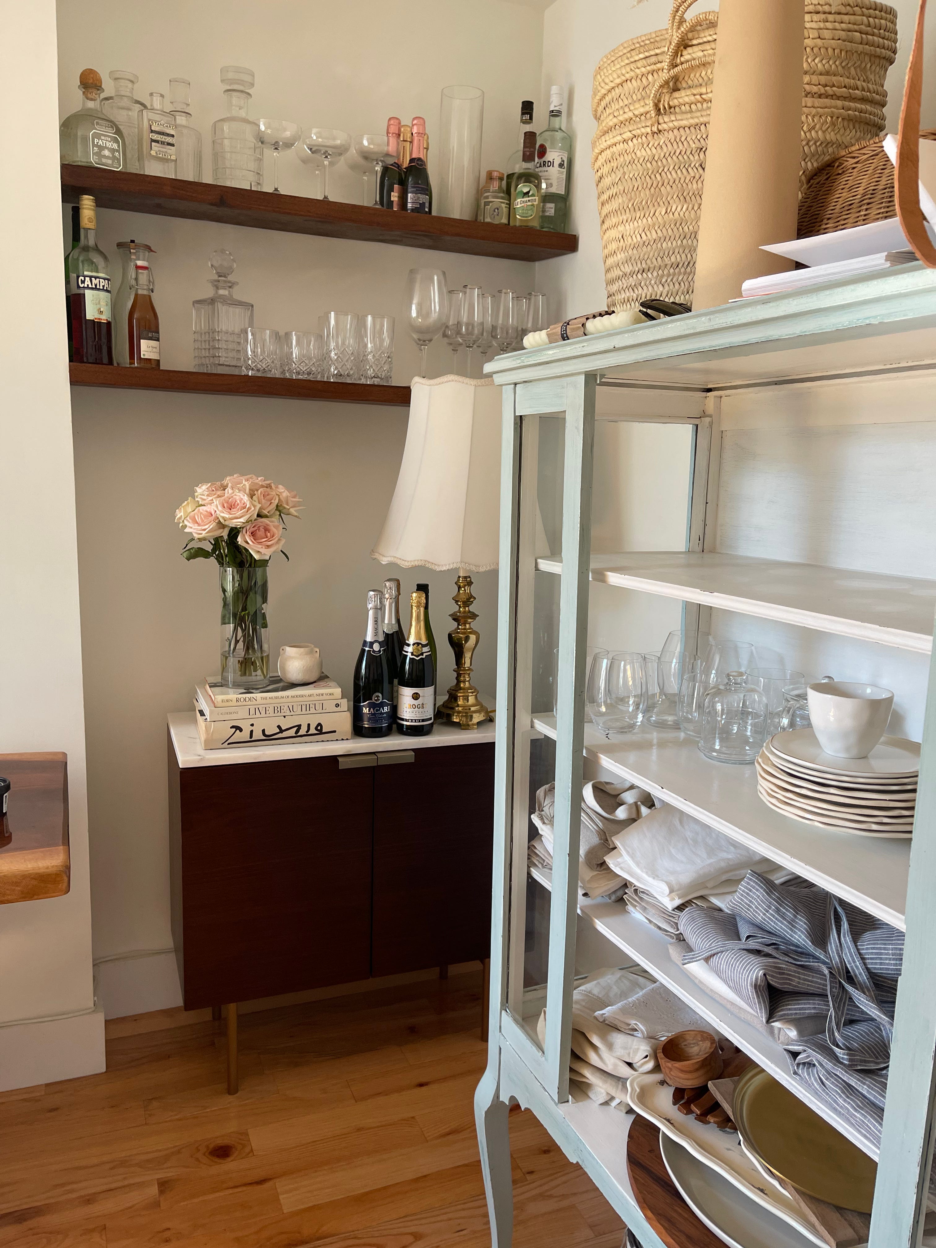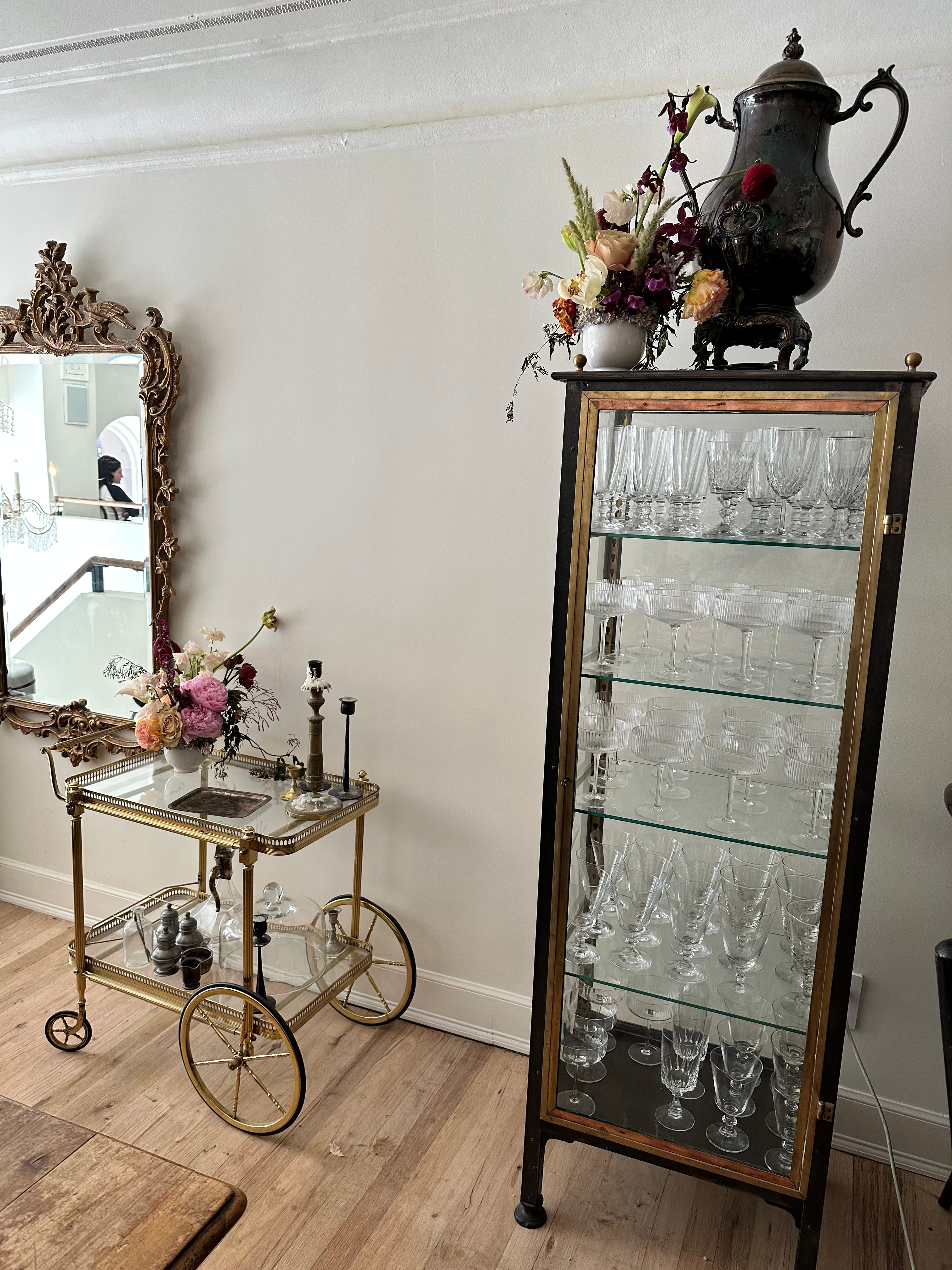 We sourced quite a few of our items from an antique store in Hudson called Red Chair on Warren. We bought a French bar cart, a display case, two bistro wooden tables, and a lot of silverware and silver trays. The owner is really lovely and curates the best selection from France.