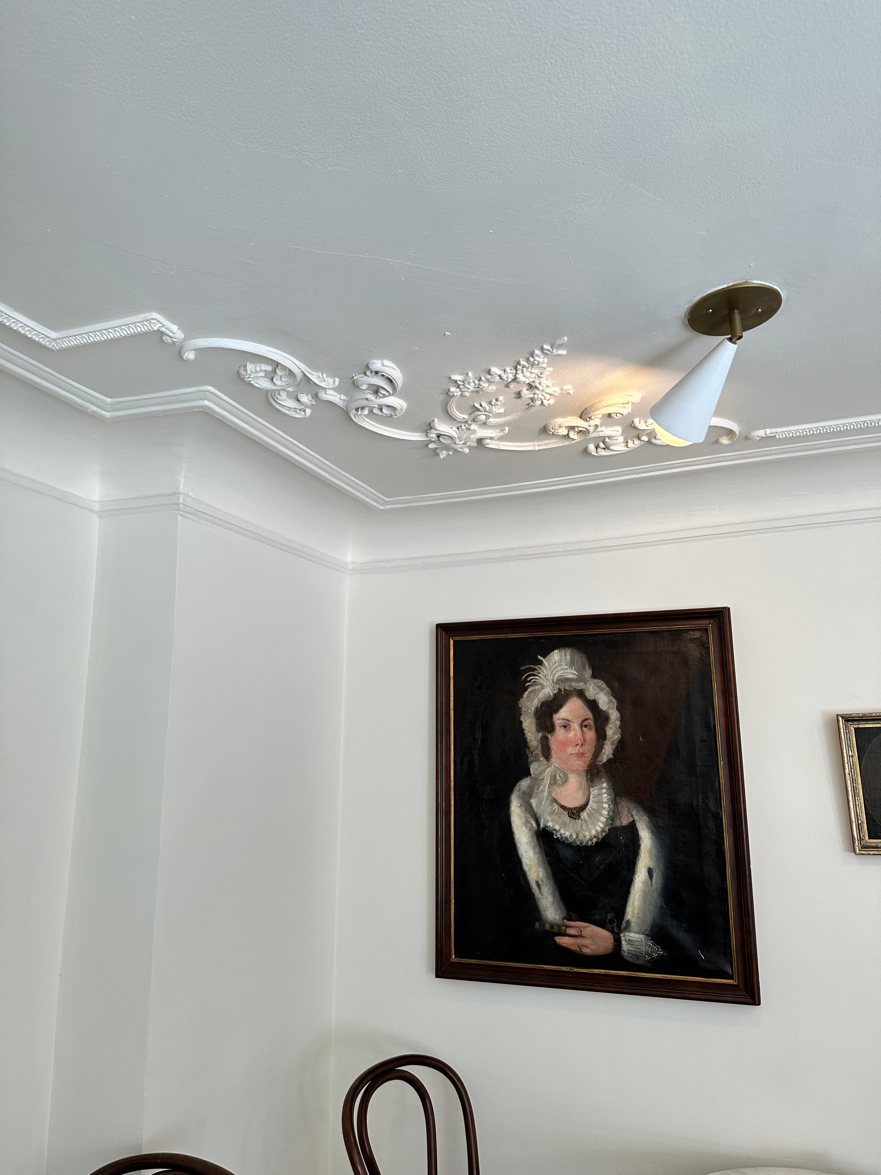 In our original "bakery" / apartment, we had limited space but had so many glasses, plates, and linens due to our love of hosting. I found this antique hutch at a stoop sale in the neighborhood and fell in love with it. When we were designing this space, I knew I wanted to incorporate it somewhere as a nod to our home and a place to house things for the bakery. Now it holds antiques, gifts from customers, and a magazine by a local school. We painted it white but I did love the original color.