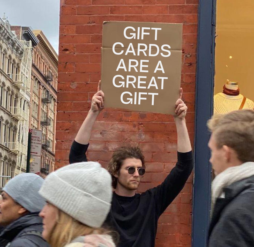 Yeah I said it! DOWN with the narrative that gift cards are unthoughtful! I love a gift card.